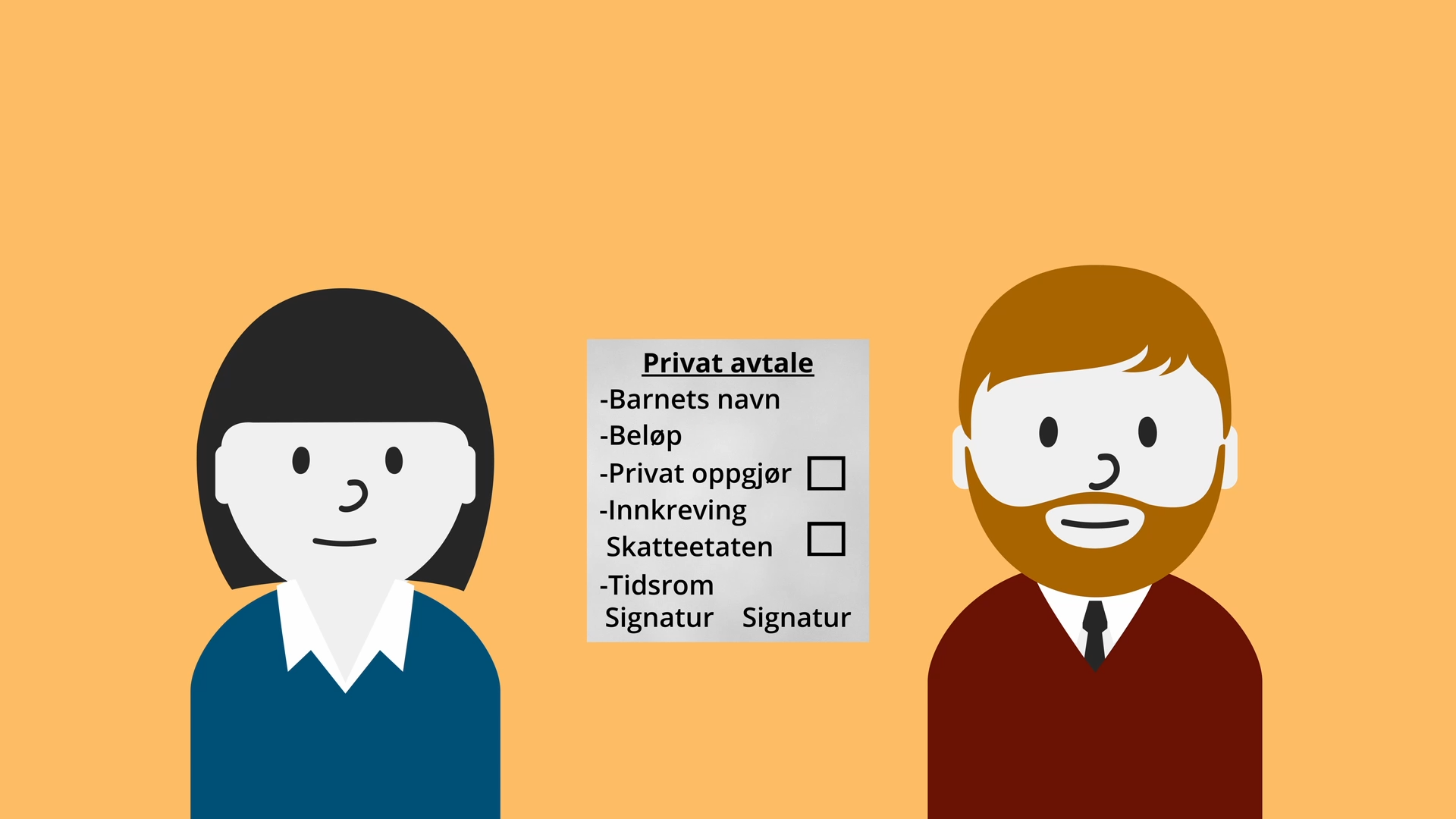 Det er ingen krav til hvordan en privat avtale om barnebidrag skal se ut, men det er noen punkter det er lurt å få med seg: